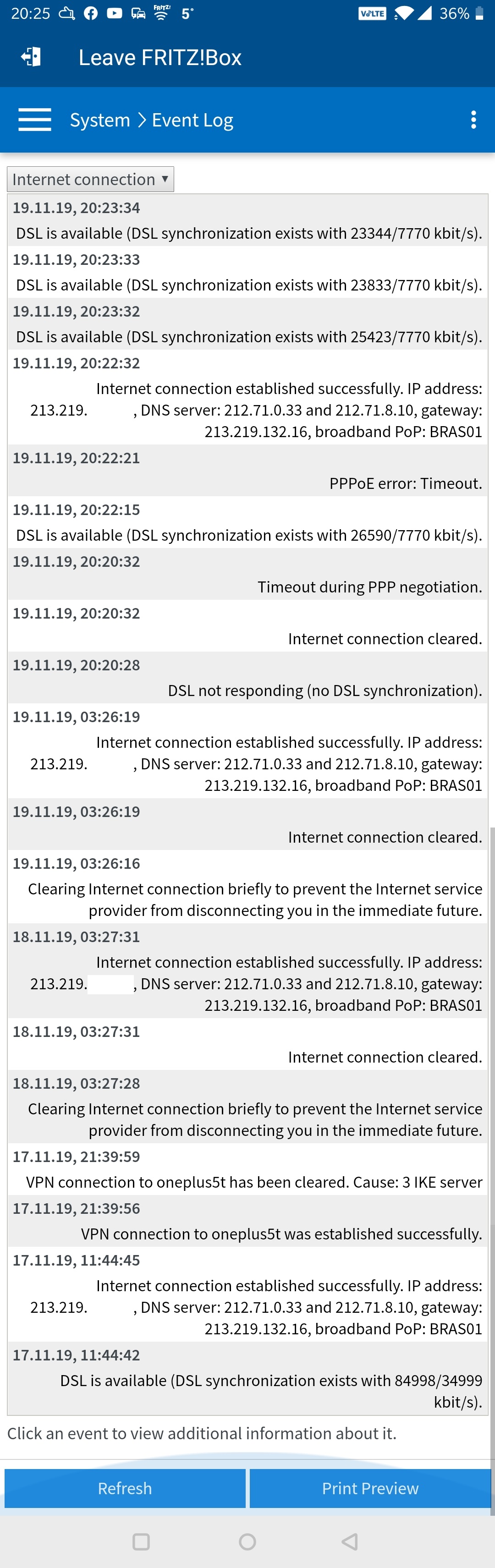 Gisterenavond vield VDSL weg, sindsdien is er weer verbinding maar zeer onstabiel.