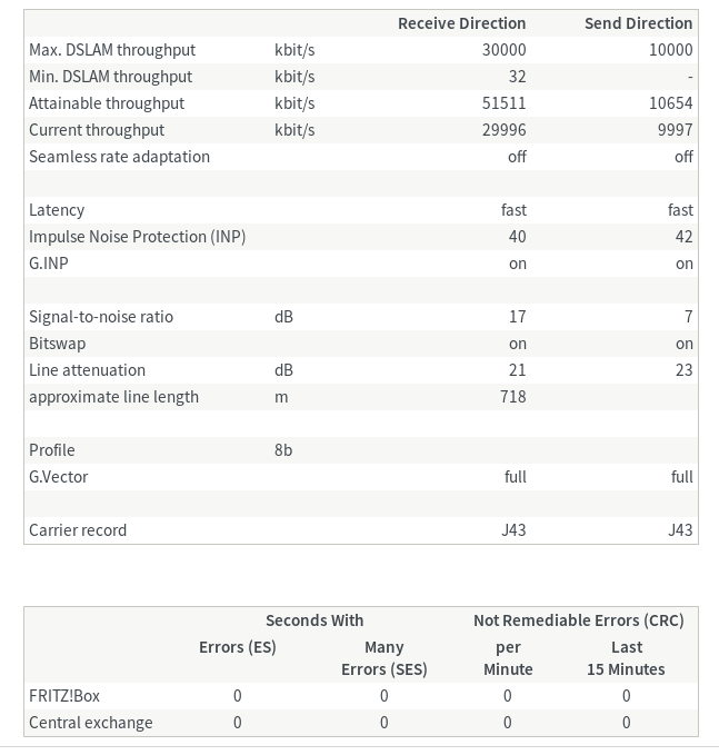 Daarna is vectoring terug actief geworden: 50/15 is het provisioning profiel (zone 2) met vectoring (FritzBox).