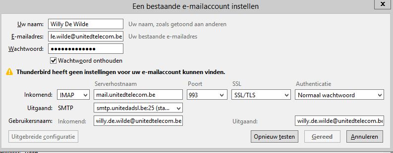 Ik heb geprobeerd de inlog gegevens te reconstueren met de info op de telecom help pagina's