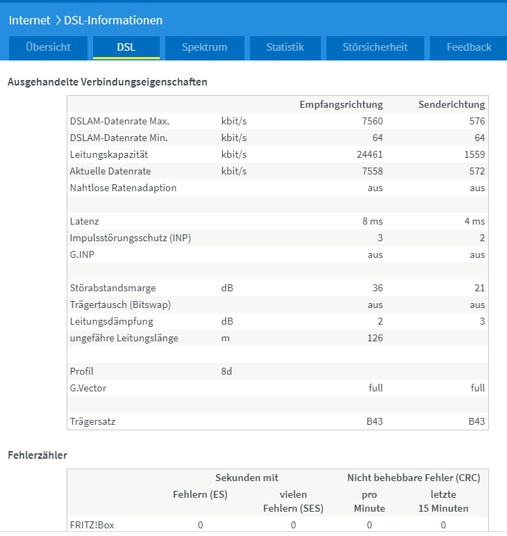 OPGELOST: Fritzbox 7490 - snelheid teruggevallen naar 7,5 Mb/s en 0,5 Mb/s