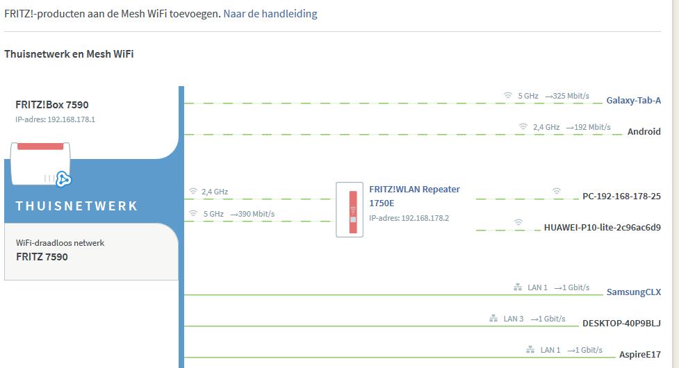 - - ingebonden in het "mesh" systeem van de Fritz!Box.