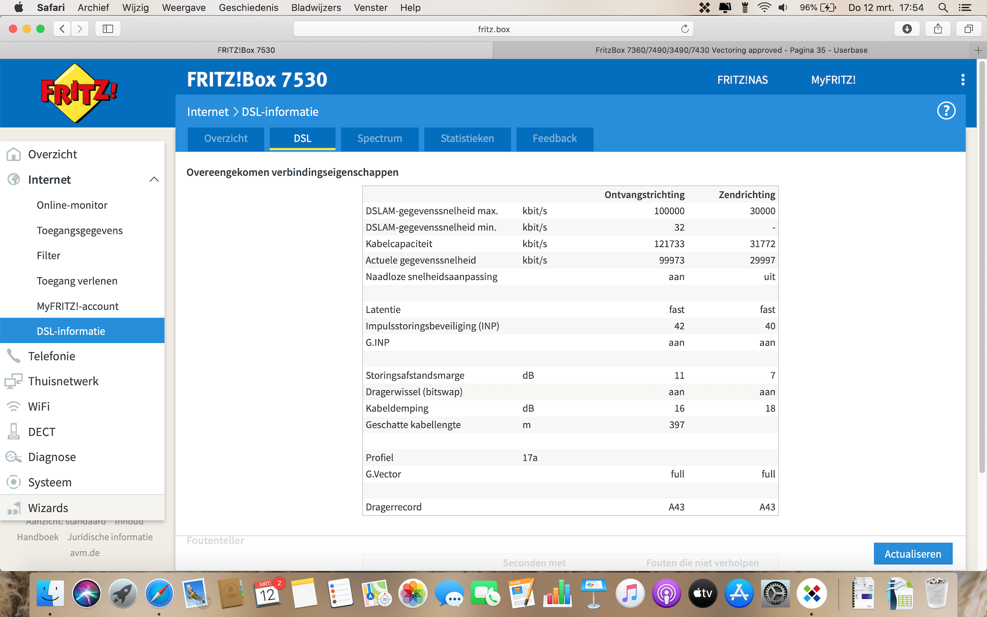 Per ongeluk 'use previous dsl driver' na restore vergeten aan te vinken. Nu sinds gisteren 7.558 kbit/s 572 kbit/s