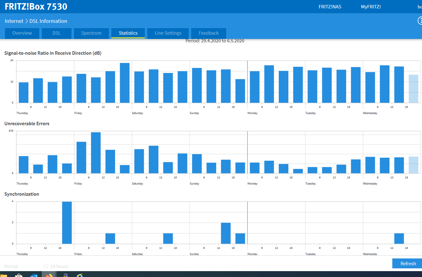 de screenshots van de fritz op 30/8 geven wel redelijk wat error seconds aan de kant van de modem, dus ik zou toch de modem en binnenbekabeling eens verifieren als je problemen zou ondervinden.