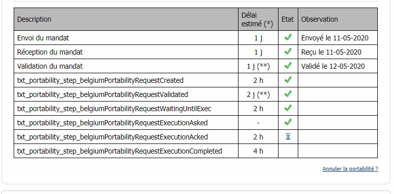 Ik zocht dat ook bij ons: 0 (nul) nummers 'en portabilité'. Wat een soep.