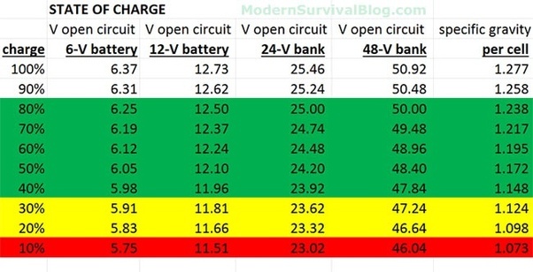 Een normale lood accu lag je nooit meer dan 50% ontladen, idealiter slechts 30%