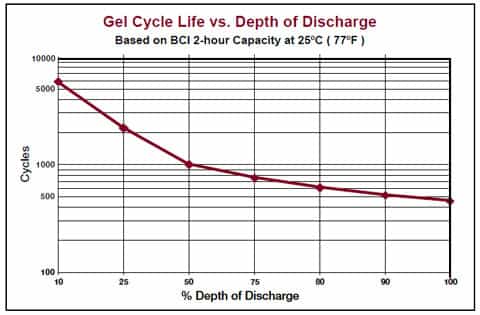 Enkel deep cycle accu's (lood-zuur) mogen meer dan 50% ontlaad worden en de levenscyclus is van alle lood accu's ergens iets rond de 350 keer.