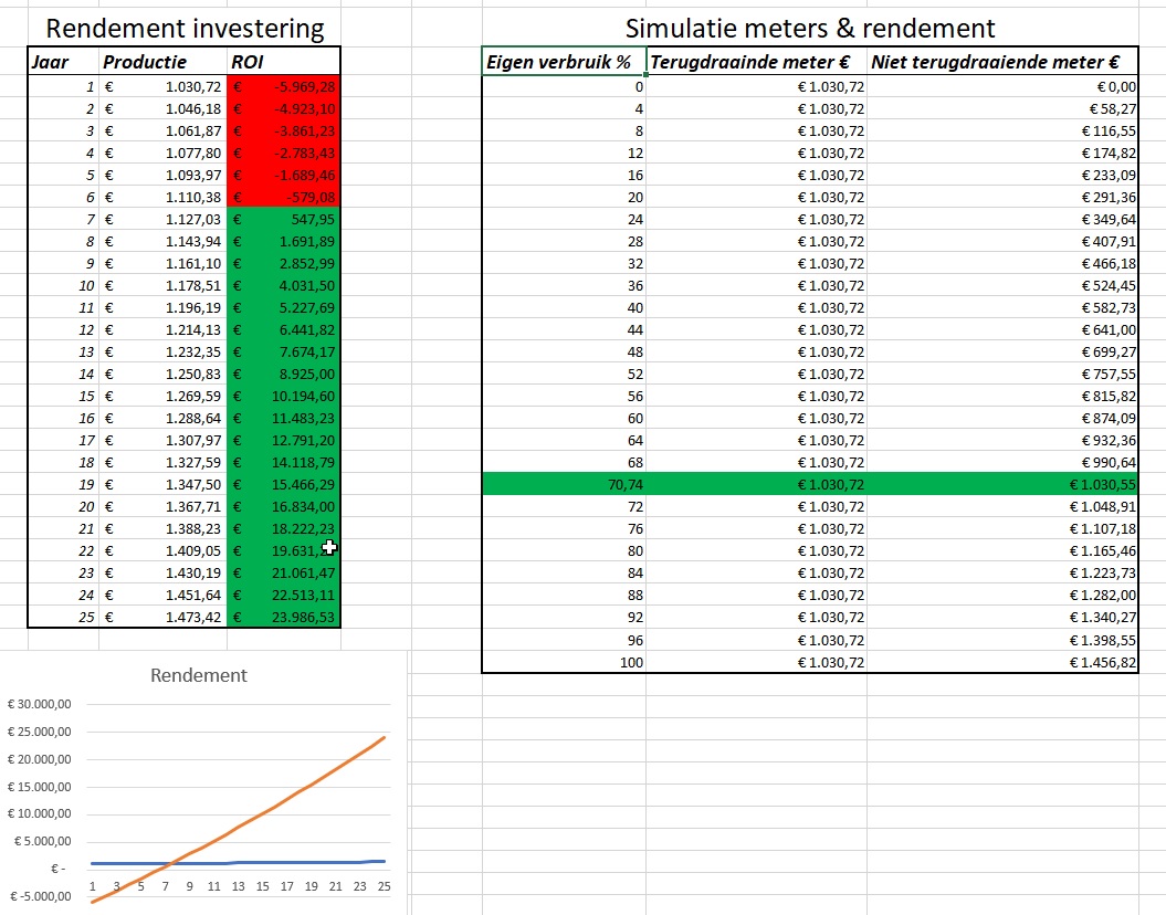 > Waardoor de "optimale" installatiegrootte eigenlijk "zo groot mogelijk" is, niet? Hoe meer panelen, hoe meer elektriciteit je maakt, het teveel is (min of meer) gratis voor "de buren". Wij verbruiken nu 3500kWh, maar dat is eigenlijk irrelevant. Hoe meer ZP's we leggen, hoe meer momentane elektriciteit die panelen opwekken (bewolkt weer, 's ochtends/'s avonds, ...).