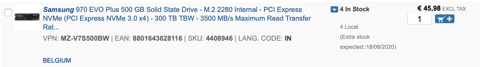 Bedankt, maar de 1Tb versie kan niet geleverd worden. Amazon kan niet specifiek zeggen waarom en de verkoper ook niet. Was dit strontbeu en kheb dan maar een 970 EVO Plus besteld via B2B kortings pagina van mijn vrouw.
