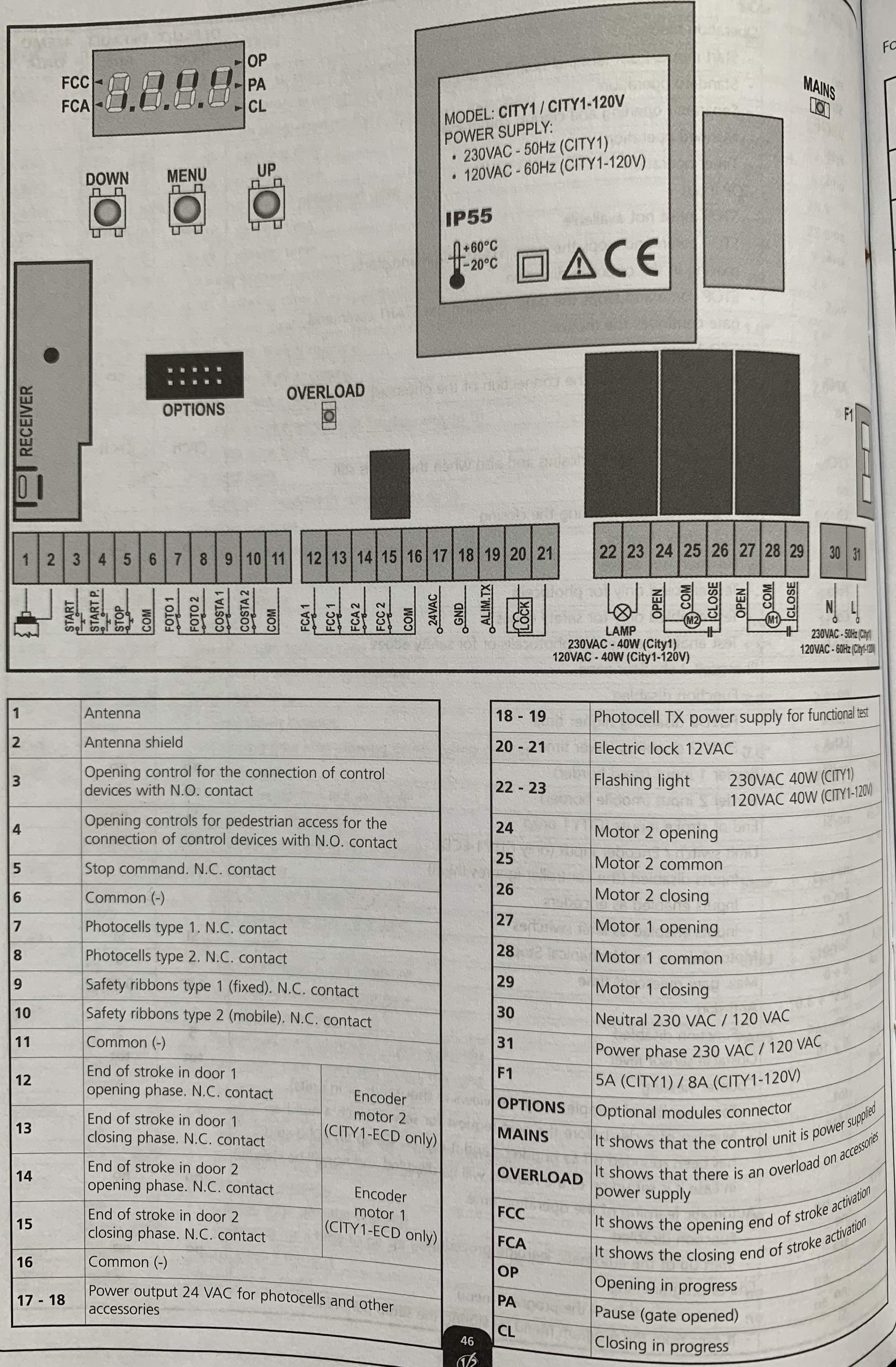 Fotocellen en andere veiligheidsfuncties zijn normaal NC (normaal gesloten) contacten.