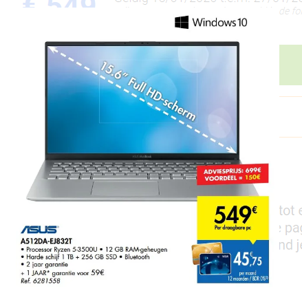 Kan hij niet via de (hoge)school aan een degelijk toestel tegen een schappelijke (wegens aankoop in bulk) prijs geraken?koenraaddeconinck schreef:Verder: onze zoon is ook op zoek naar een nieuwe laptop, hoofdzakelijk voor studies. Hij zoekt een 13 tot 15 inch max en heeft een budget tot 12 à 1300 euro. Denk aan HP, ASUS of LENOVO (alhoewel ik van deze laatste enkel weet dat zij de "vroegere IBM zijn). Iemand die hier een advies kan geven ... ?