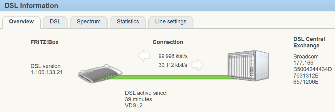 DSL is available (DSL synchronization exists with 99998/29905 kbit/s).