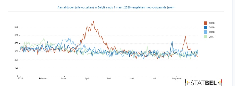 Elk jaar hebben we een periode met oversterfte door de griep en door een hitte golf, dat is dit jaar niet anders.. wat er wel anders was : dat heel België op zijn gat ligt, dat personeel wordt ontslagen,dat winkels toe gaan & dat mensen schrik krijgen van elkaar en van zichzelf omdat er een angstklimaat gecreëerd wordt.