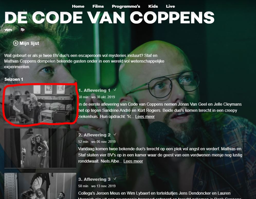 Hier werkt VTMGO niet meer. Alle afleveringen van alle programma's staan grijs.