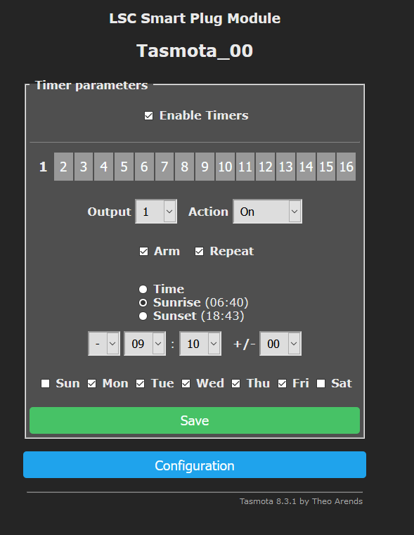 PS 2 Om zomer en wintertijd automatisch in te stellen met Tasmota firmware, geef je het volgende in op de console (webpagina): Bron: Tasmota -- Commands