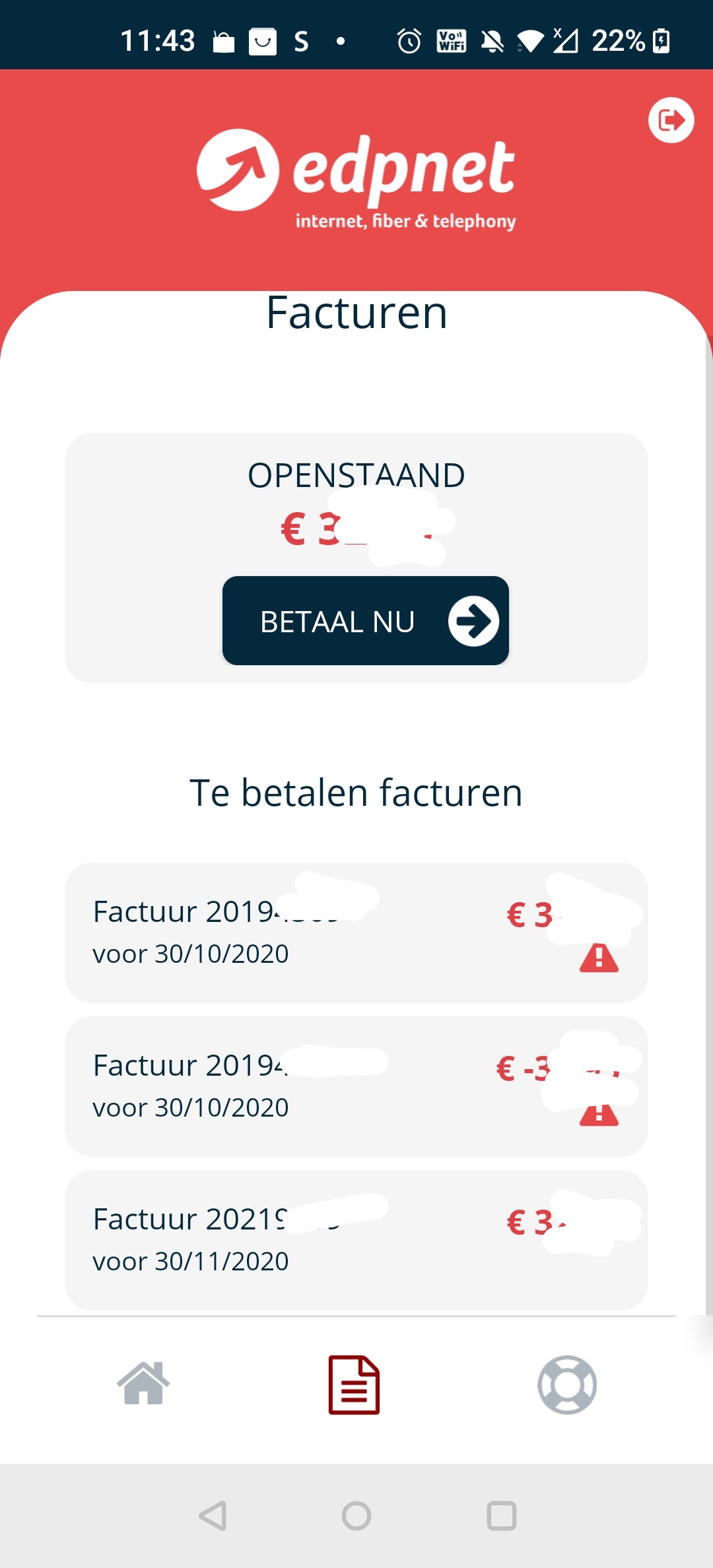 Bij de facturen staat een knop met het bedrag van de openstaande factuur en "Betaal nu"en als je daar op klikt kom je op de website terecht die niet echt mobiel vriendelijk is om online te betalen. Maar ik betaal mijn facturen via domiciliëring.