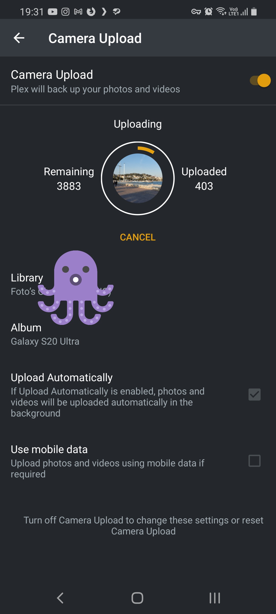 Net de backup van Whatsap fotos afgezet, alle andere apps stond al af. Dus zal nog wel wat langer zijn.