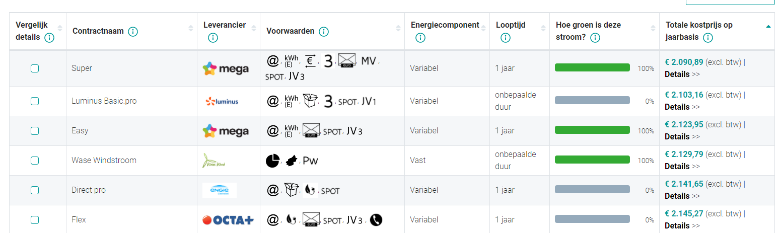 Opgelet met de prijsbrekers... vaak is hun vaste- en energiekost heel wat hoger dan de concurrentie maar compenseren zij dit door een grote initiele korting (ieder jaar overstappen is dan de boodschap, en dan heeft een vast contract van 5 jaar weinig zin).