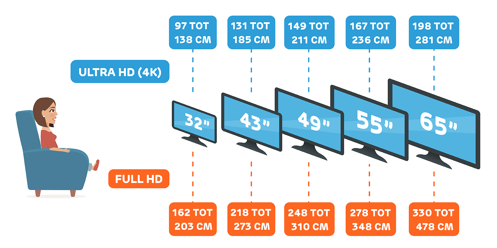 Er is comfortabel plaats voor een 43'' TV. Ze zitten op iets meer dan 2,5 meter van de TV.
