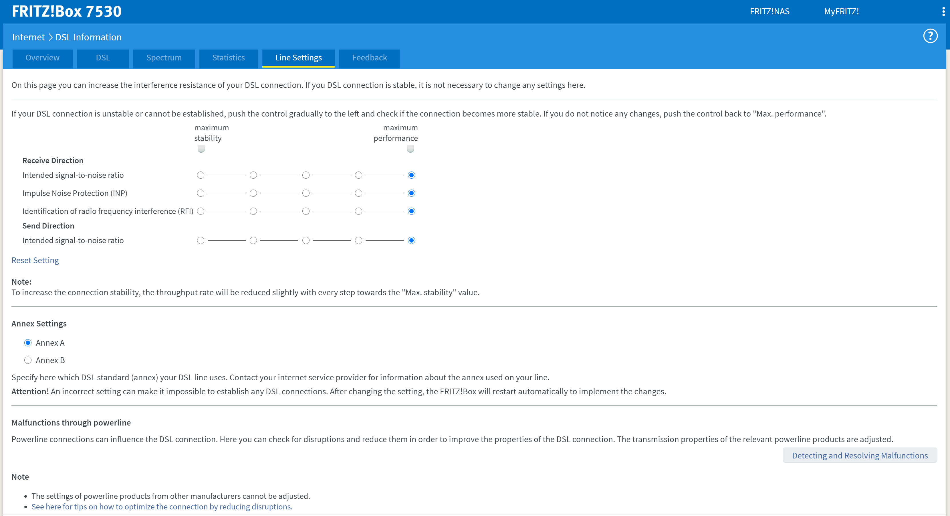 , maar waar vind ik op de FB 7530 de "Use previous DSL version" optie?