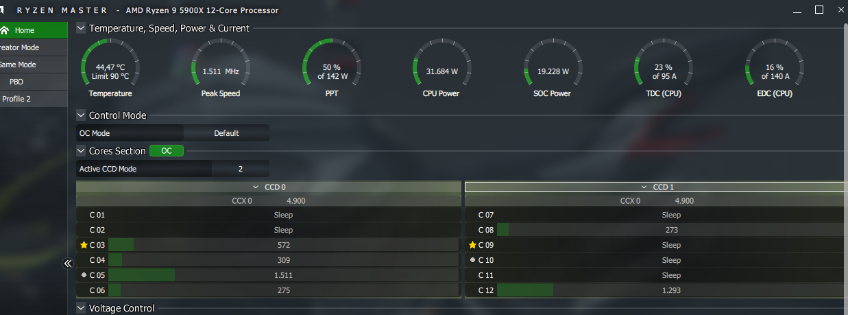 BIOS (UEFI) een update gegeven naar versie 3003, en na volledige update van Windows en drivers, Ryzen Master er eens opgezet om de functionaliteiten van de processor eens te bekijken.