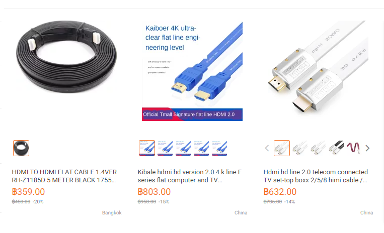 screenshot Lazada (geadopteerd Thais broertje van Aliexpress ) prijszetting 5meter Hdmi platte kabels