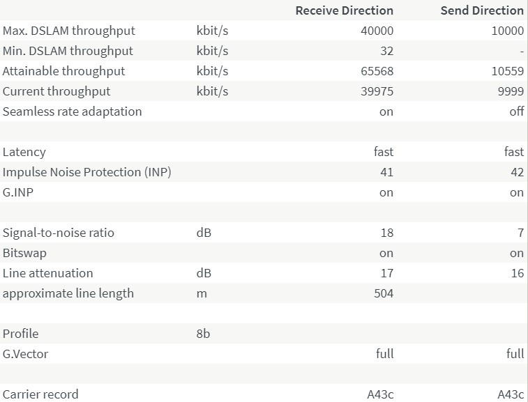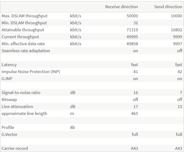 Je lijnwaarden zijn verbeterd, SNR is amper gedaald, dus misschien zit er toch nog een verhoging in naar 70/10? Maar inderdaad, met een verandering naar een 17a profiel zou je nog hogere snelheden kunnen halen.