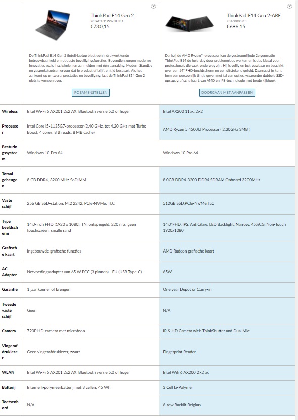 Ik ben net bezig om een nieuwe laptop te bestellen(Lenovo ThinkPad E14 Gen 2)maar twijfel tussen de amd 4500u vs intel i5-1135G processor.