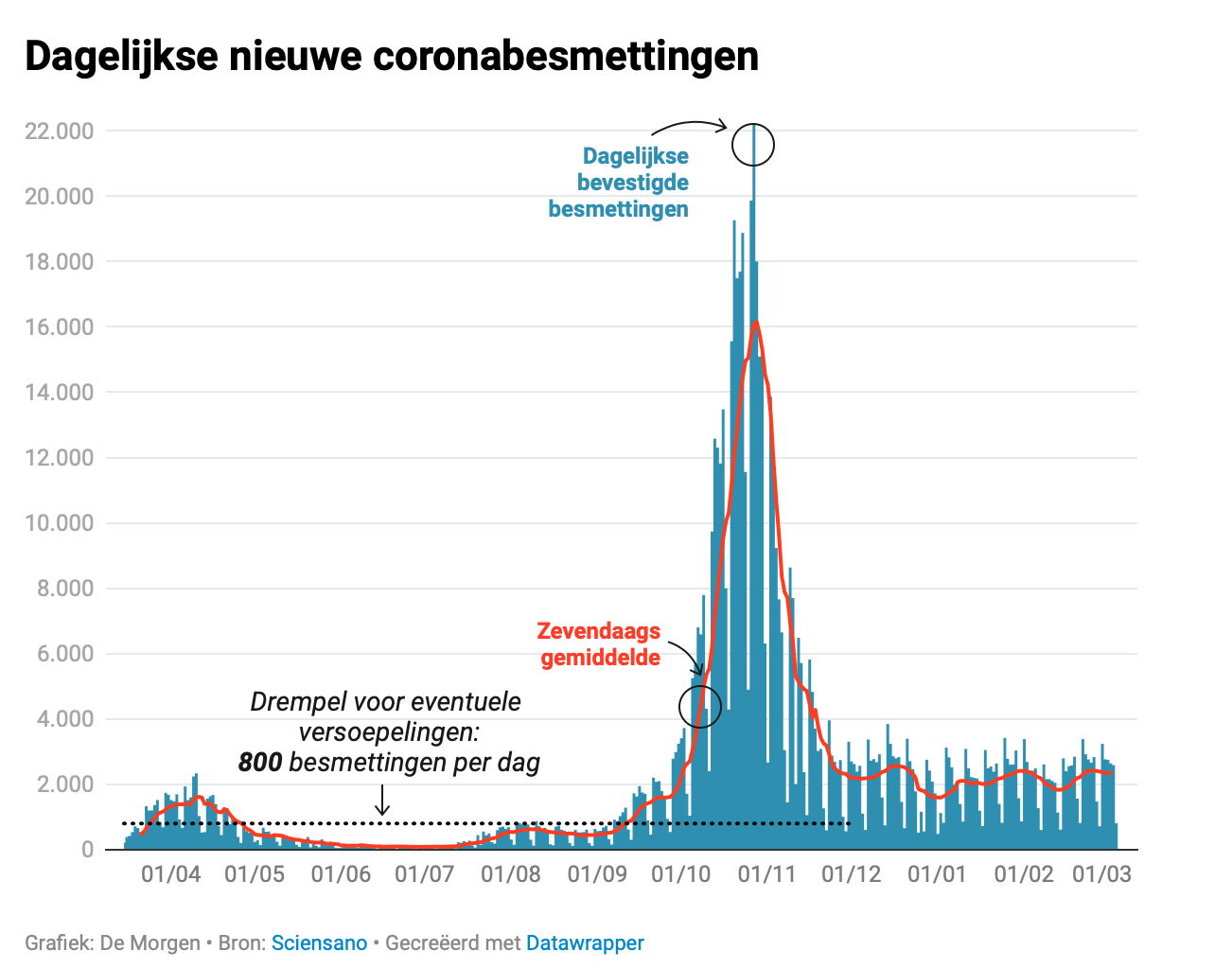 Tja, wat moeten de politici anders uit hun nek lullen? Ze hebben op alle niveau's weer met grootste onderscheiding geblunderd sedert de start van de pandemie.CCatalyst schreef:"Nog even volhouden," dat horen we al sinds oktober. Het zou voor "de moraal" wel eens helpen als de cijfers echt zouden zakken zodat we weten wat "nog even volhouden" concreet betekent. Waarom zou het nu wel moeten lukken met "nog even volhouden" als er na 5 maanden even volhouden nog steeds geen beterschap is, integendeel, op de overlijdens na zijn de cijfers nu zelfs structureel slechter dan toen.