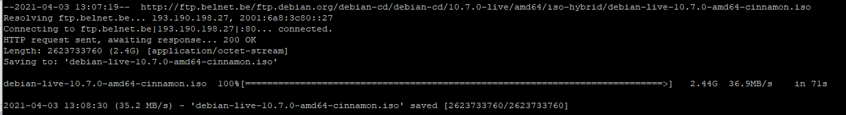 2021-04-03 09:20:05 (8.16 MB/s) - ‘debian-live-10.7.0-amd64-cinnamon.iso.1’ saved [2623733760/2623733760]