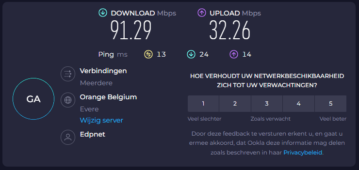 Heb ook al even een ticket lopen bij edpnet, dit ging oorspronkelijk over slechte upload lijnwaardes maar dat is vlot opgelost geraakt.