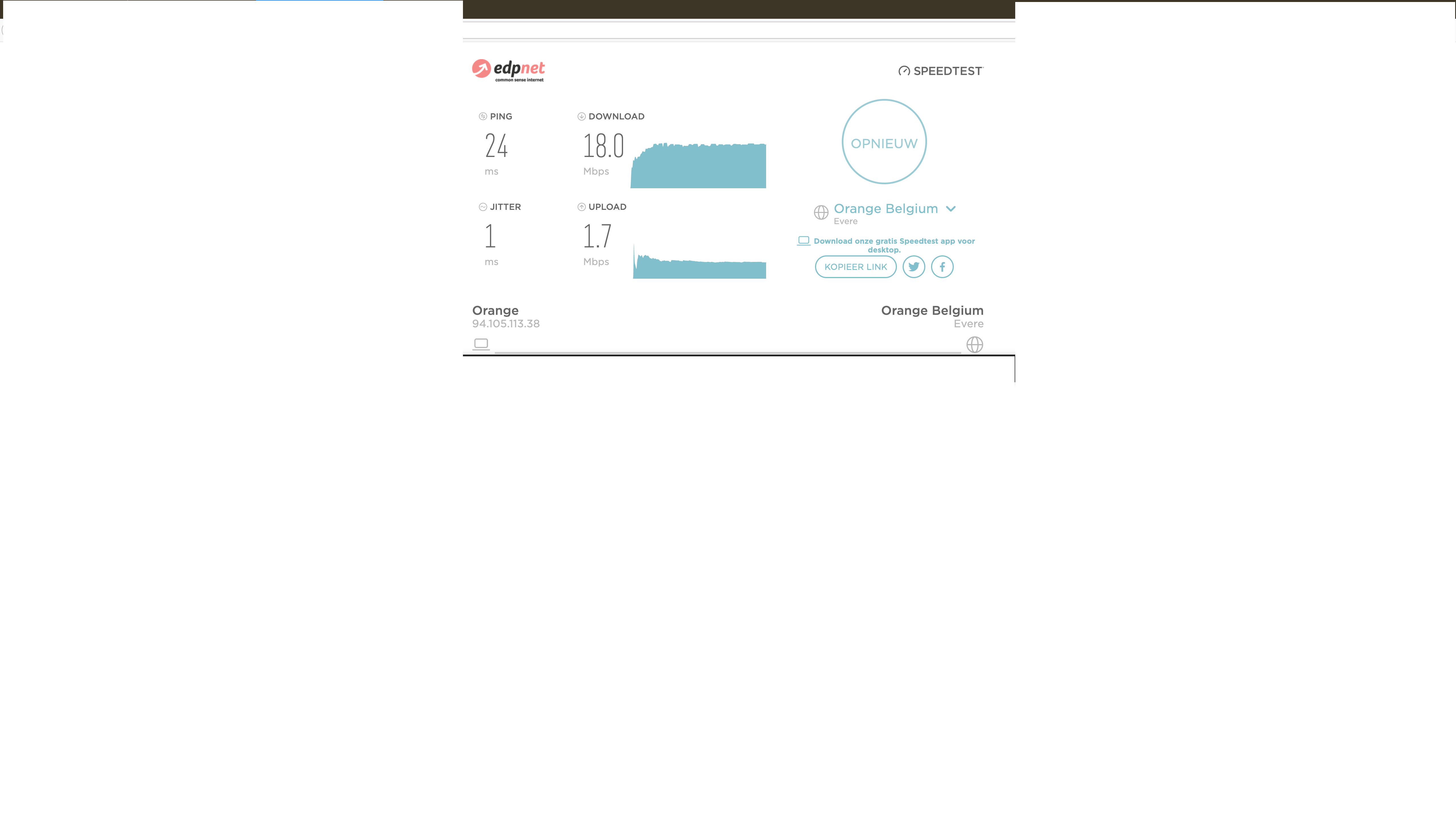 ik krijg hier steeds een onstabiele internet soms haal ik snelheden van 18 Mpbs en meestal in het weekeinde naar max 9 Mpbs.en trager