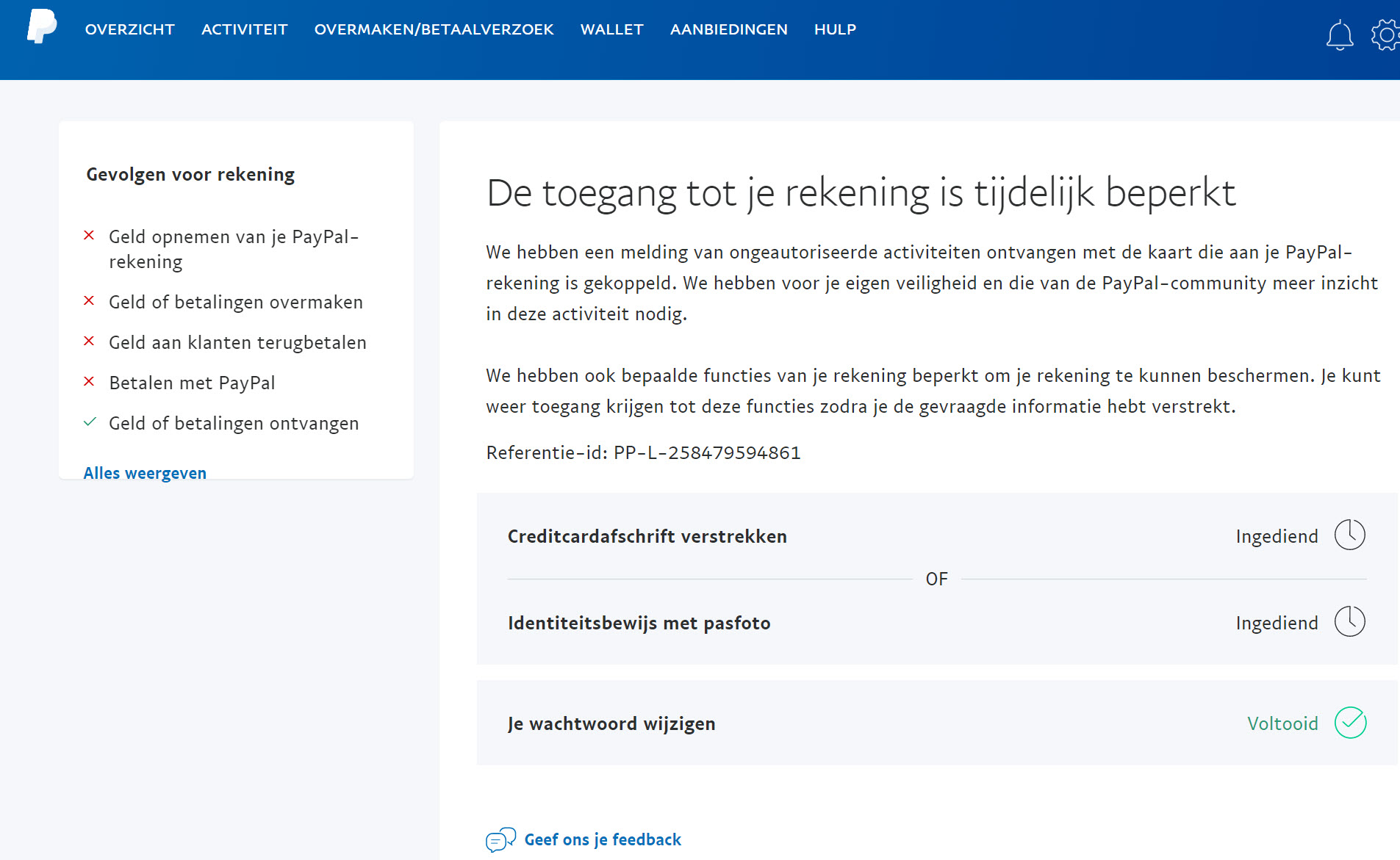 Een mens zou schrik beginnen krijgen als ik dat zo zie.satsurfer schreef:Gebeurde tijdens ik op het werk was (en daar heb ik geen tijd voor/mag ook niet van werkgever) of in het holst van de nacht (als pc's uit zijn bij mij en ik slaap)karine schreef:Nu met de sms verificatie lijkt paypal toch heel veilig.