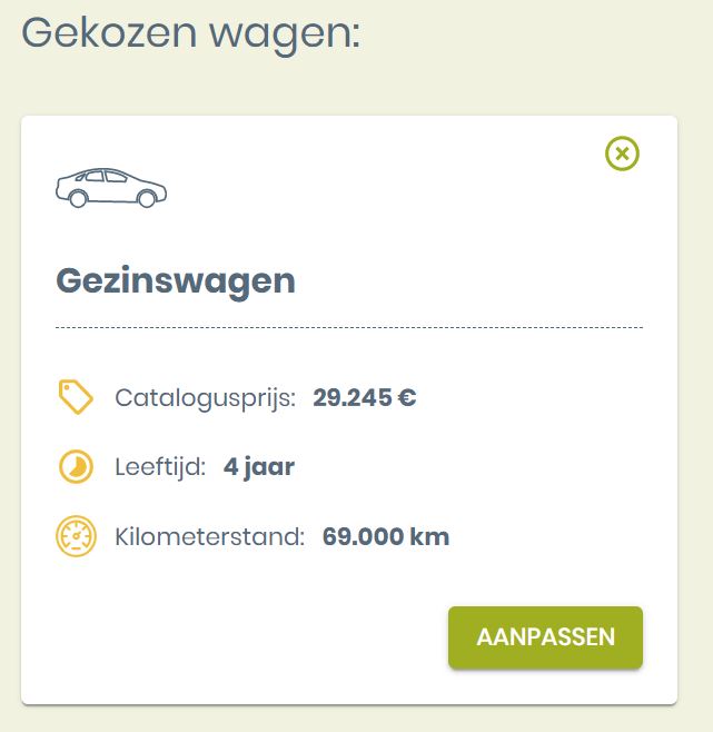 Aan de hand van de voorspelde verplaatsingen en de aankoop van een eigen wagen + onkosten maakt deze tool een berekening en maakt een vergelijking per jaar of per kilometer.