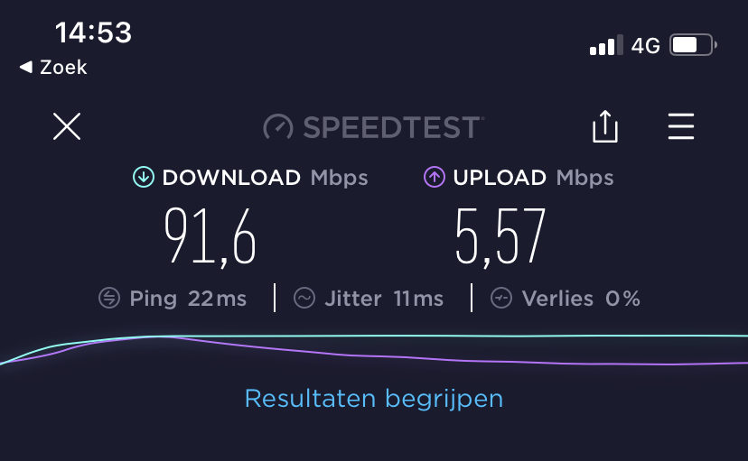 Zonet even een speedtest gedaan op LTE met one up en heb toch ongeveer 120Mbits down hoor. Binnen in huis dan nog. Mij hoor je niet klagen