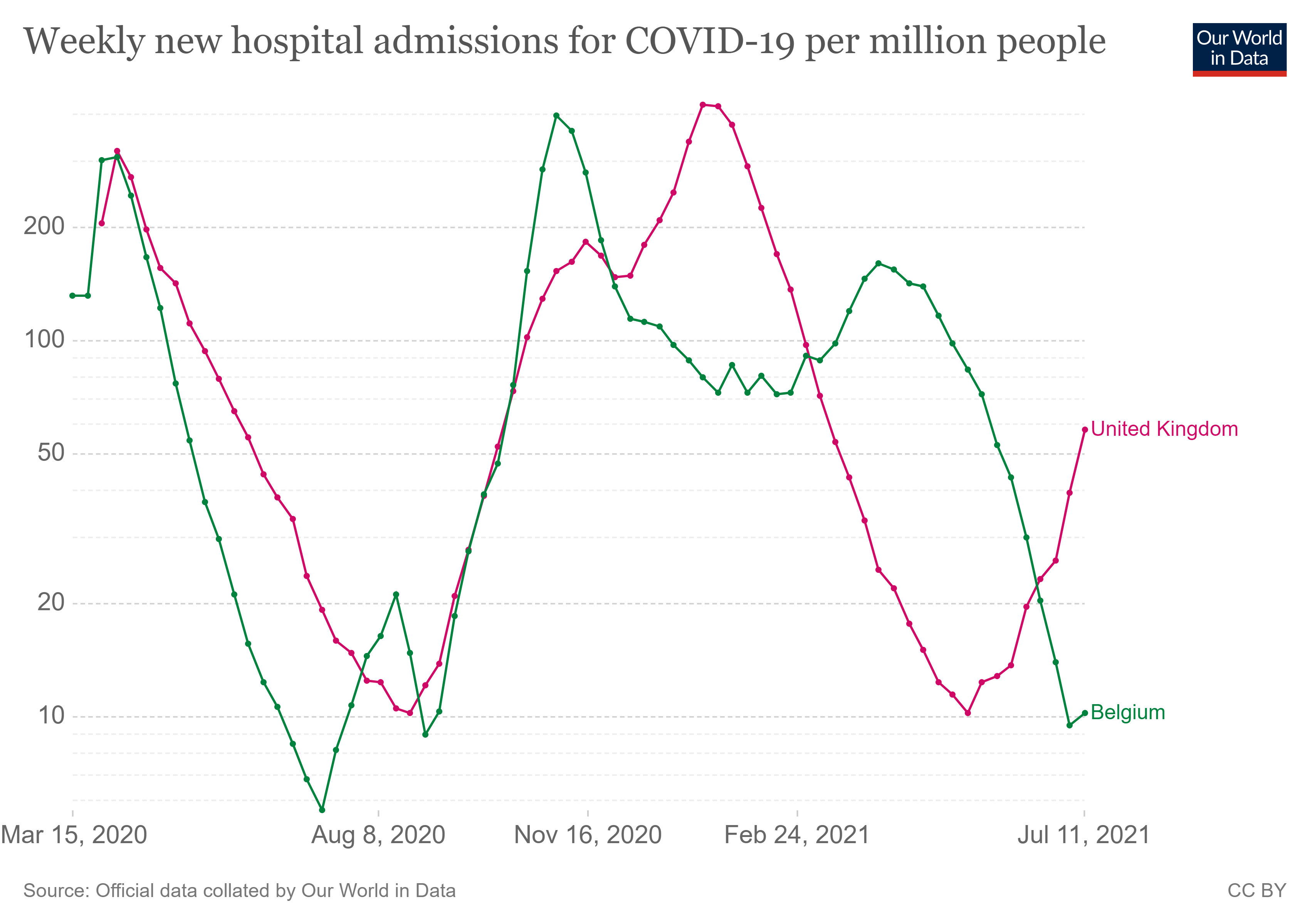 Dat laatste bepaalt dan ook alles. Enfin, bijna alles, de besmettingen geven ons een oranje kleur in de EU wat tot reisbeperkingen in onze richting kan leiden. Ik denk niet dat we nog richting rood gaan voor september - wij zijn al in vakantiemodus in tegenstelling tot Nederland. Maar hoe dan ook, je zal hier geen maatregelen zien, want als er echt problemen waren, dan hadden we nu toch al een verhoogde (en stijgende) druk op de ziekenhuizen moeten zien. Nu zie je enkel een lichte stijging, klein genoeg om nog aan natuurlijke variabiliteit toegeschreven te kunnen worden. Nee, ik denk niet dat dit de vierde golf is. Laten we ook niet vergeten dat het huidige aantal gevallen nog steeds flink onder het "cijfers-waar-we-trots-op-moeten-zijn"-plateau van het schooljaar ligt.heist_175 schreef:On-topic: de (besmettings)cijfers blijven gestaag stijgen hé.