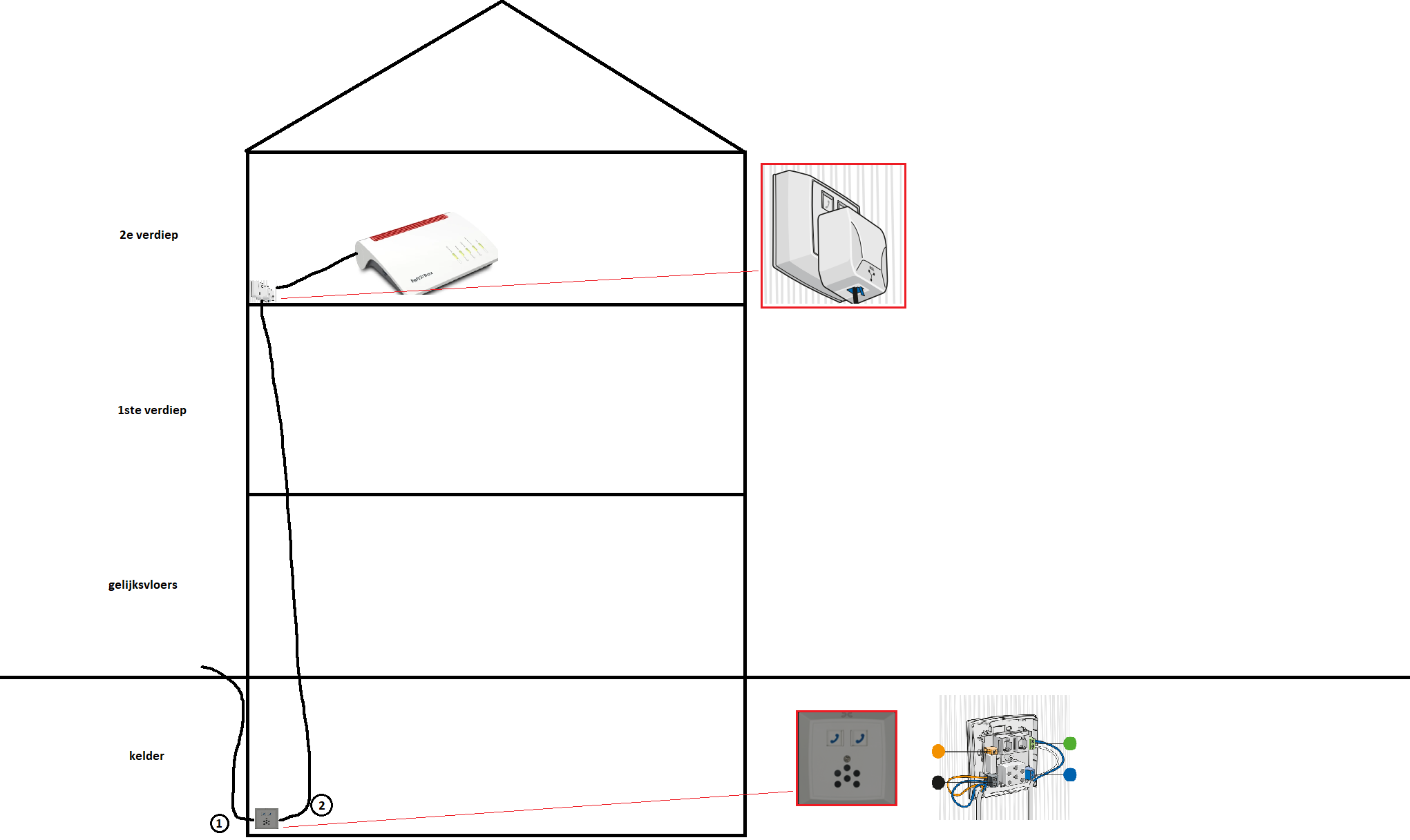 Proximus heeft mijn contactdoos in de kelder geplaatst maar ik had graag mijn modem op het tweede verdiep.