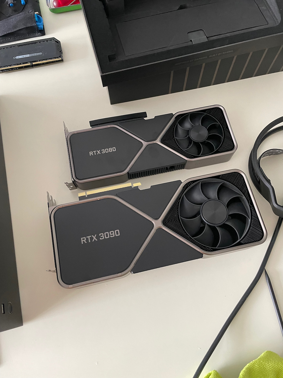 Haha, ik wist niet dat die zo hard verschilden van grootte! Interessant om te zien. Ik ken er een paar die zouden moorden voor wat er te zien is op je foto.selder schreef: Ja, de 3080 is ook al geen kleine kaart, maar dat is maar een dwergje in vergelijking met de 3090![]()