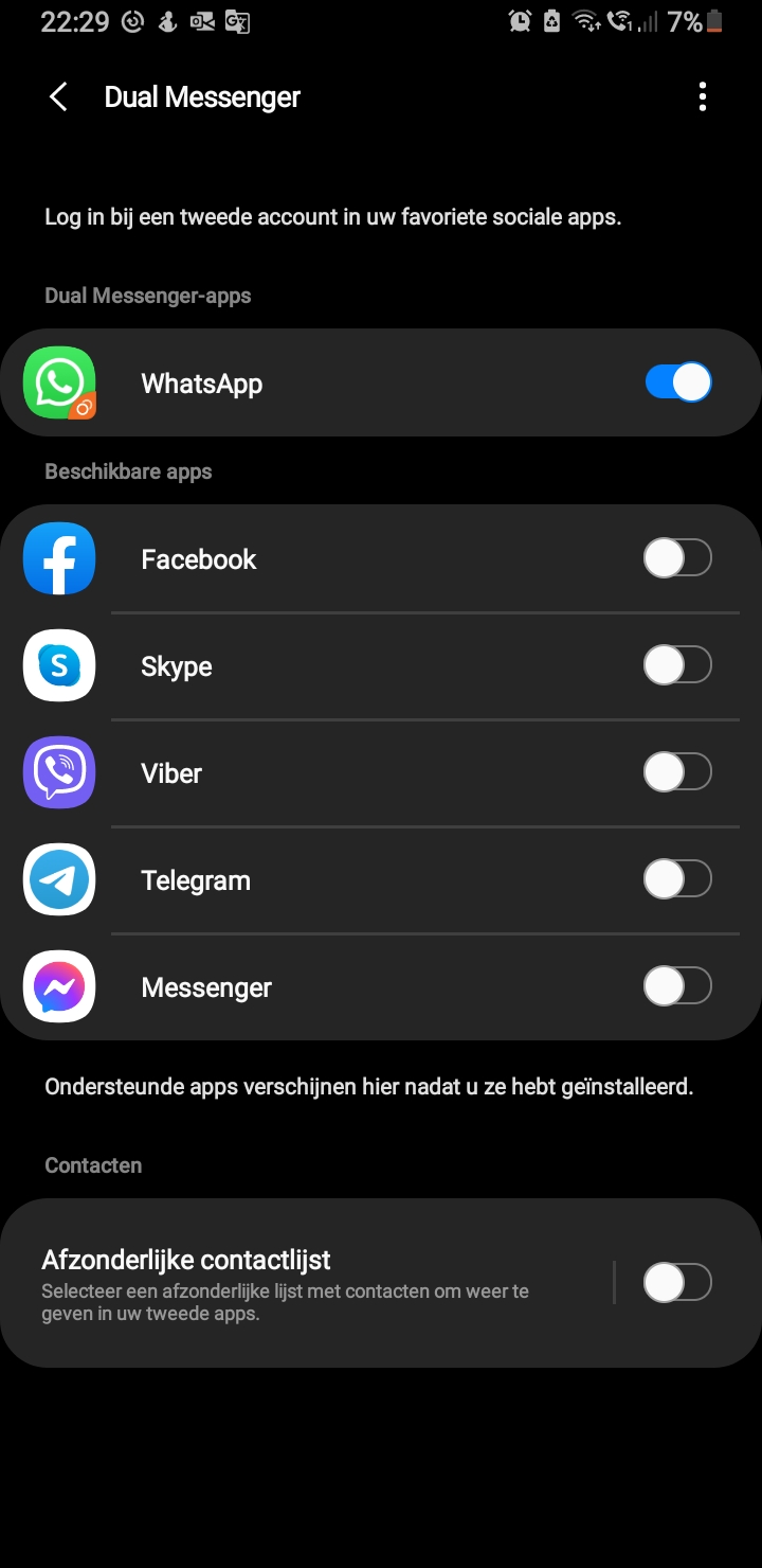 Dit kan niet op een iPhone. Ben je verplicht van met de 2 whatsapp varianten te werken. Tenzij er iemand anders een oplossing heeft.devilkin schreef:Op oneplus toestellen heb je parallel apps waarmee je oa WhatsApp kan dupliceren. Zo gebruik ik er twee op 1 toestel (werk/privé)