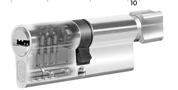 Het voordeel van een standaardslot dat aan beide kanten een sleutel kan aannemen, is dat je het slot kan blokkeren door de sleutel er langs de binnenzijde in te steken.