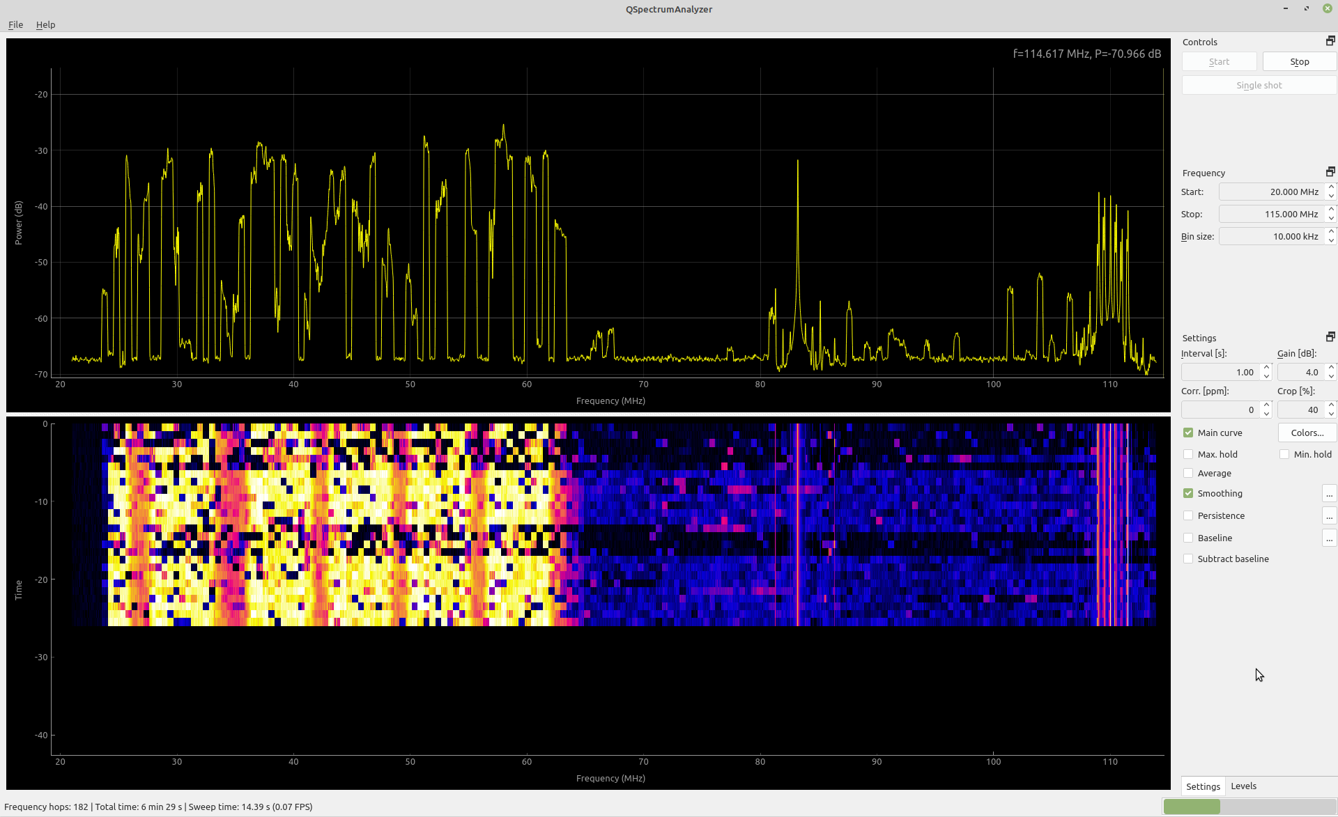 Hierboven een frequentiespectrum gemeten door mijn DVB-C tuner: