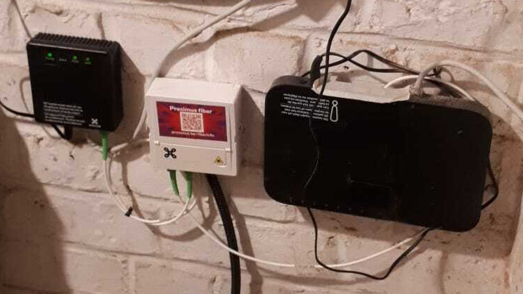 Het witte bakje is de fameuze ONT (komt fiber binnen en gaat fiber buiten, passief)
