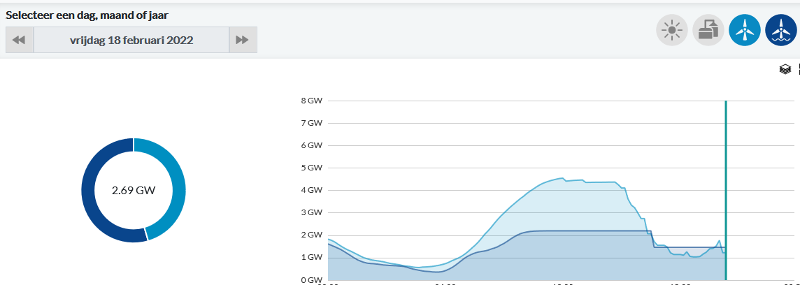 Ja, op https://energieopwek.nl/ zie je mooi hoe de wind in Nederland gestaag toeneemt.