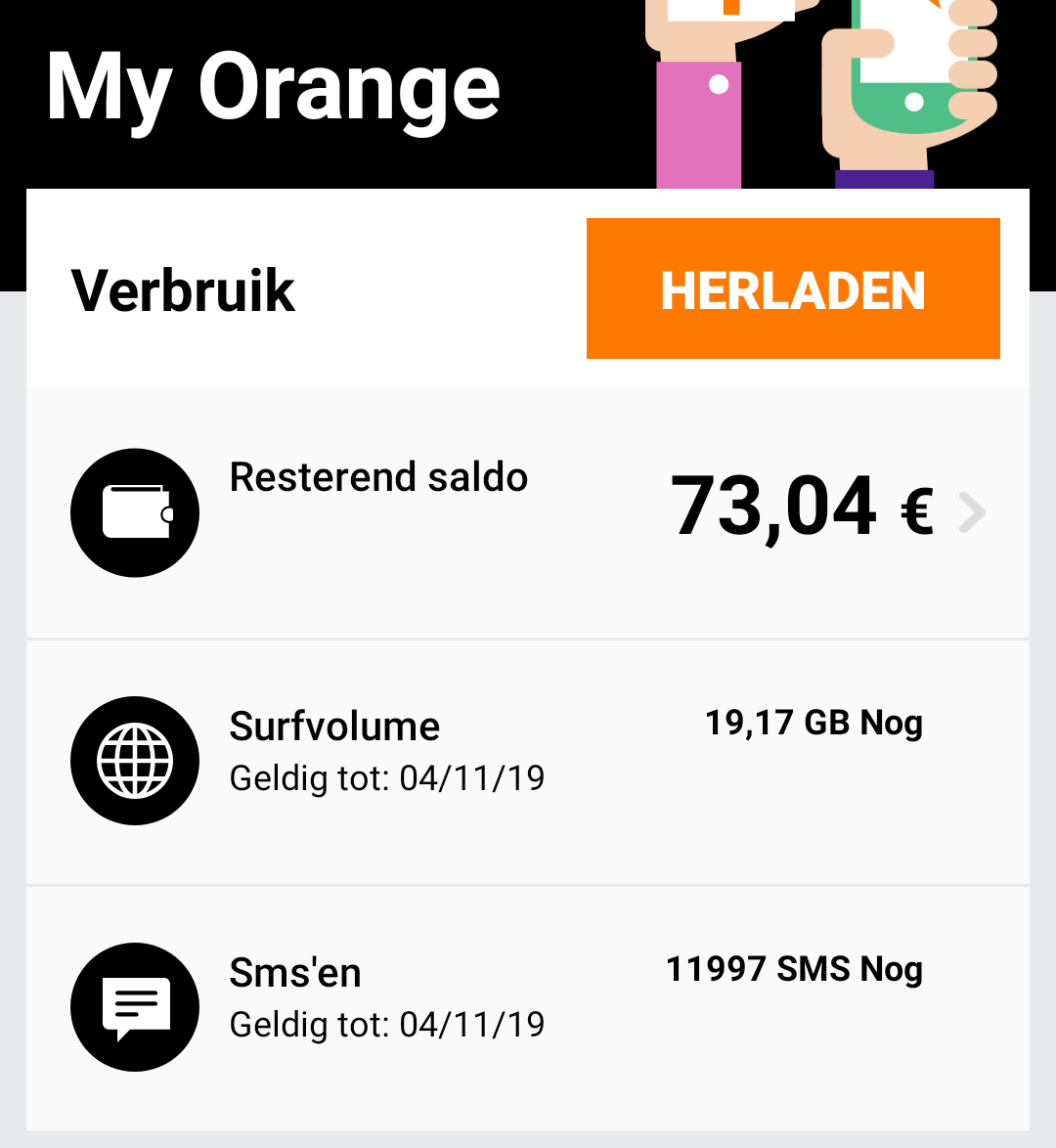 Dus dag voor vervaldatum herladen, en cumuleert toch hé? Al dat beltegoed kan ik gebruiken bij Play Store of na 1-2 jaar terug naar Hey, en daar opgebruiken.