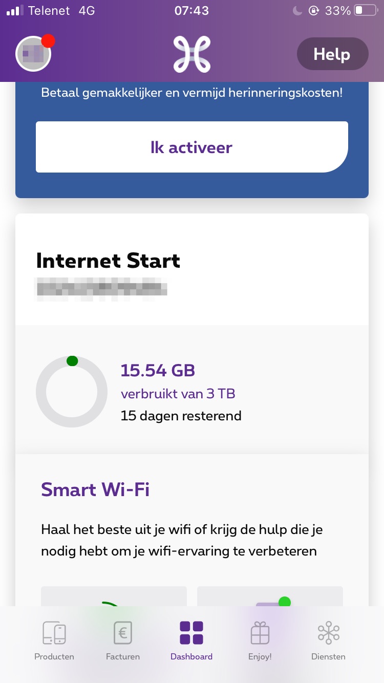 De downloadsnelheid wordt beperkt tot 3Mbps zodra je een surfvolume van 500GB per maand overschrijdt(Dit surfvolume wordt vanaf 01/08/2022 voor nieuwe en bestaande klanten verhoogd tot 3 TB)