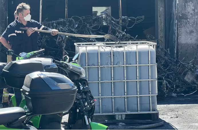 De elektrische deelscooters vatten vermoedelijke vuur na een kortsluiting bij een oververhitte batterij. De brand ontstond buiten naast de opslagplaats van deelbedrijf Go Sharing. De brandweer bluste het vuur en dompelde de batterijen van de voertuigen onder in containers gevuld met water. Een gespecialiseerd bedrijf zal die verwijderen wanneer het brandgevaar volledig geweken is. 8)