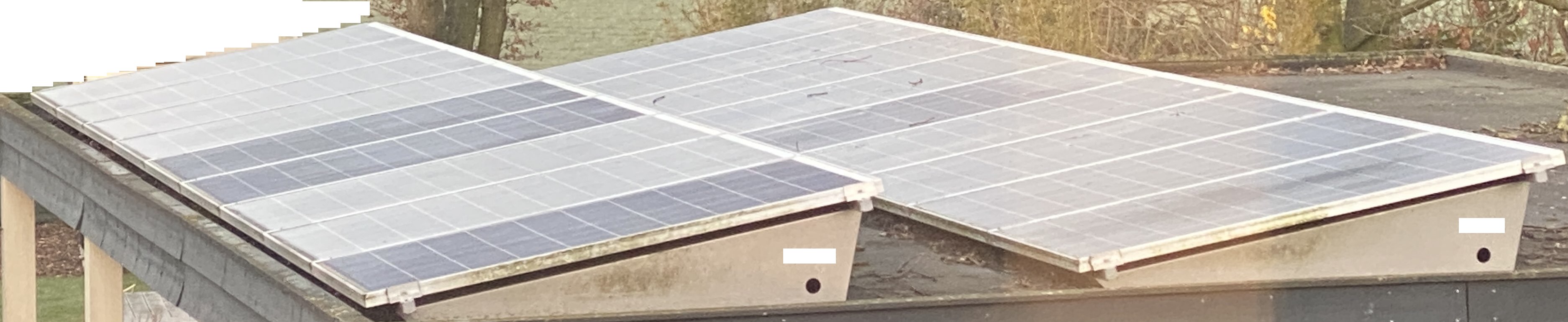 De panelen hebben ook geen micro-omvormer er onder, het zijn 2 strings naar 1 omvormer.