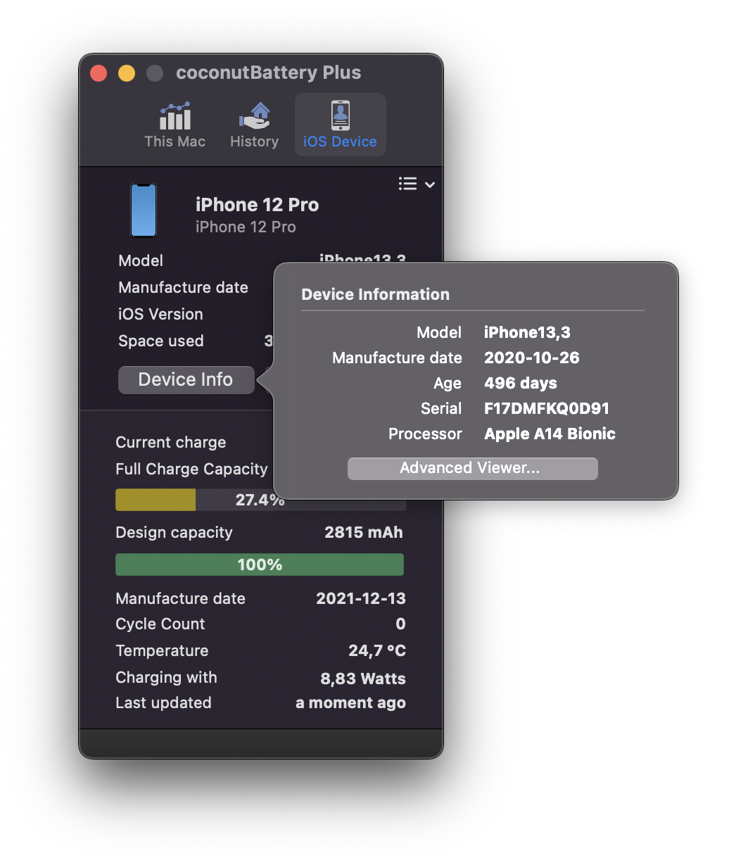 Te koop nadat ik de batterij vervangen heb, die aangaf nog maar 86% van de capaciteit te hebben: