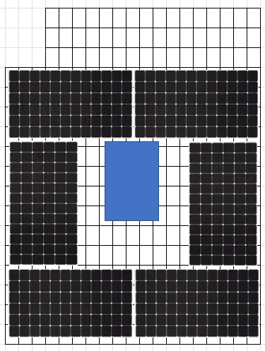 Volgens een snelle puzzel moet het volgens mij dus mogelijk zijn om boven en onder het dakraam telkens 2 panelen 'landscape' te leggen, en naast de dakraam links en rechts één paneel rechtopstaand. Ik zal het eens voorleggen aan de leveranciers en zien wat zij zeggen...