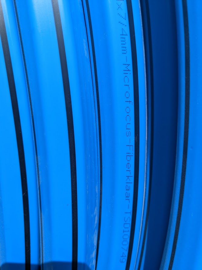 Hier in wetteren leggen ze naast de buizen van Fiberklaar (lichtblauw) ook meteen buizen van Telenet (zwart)