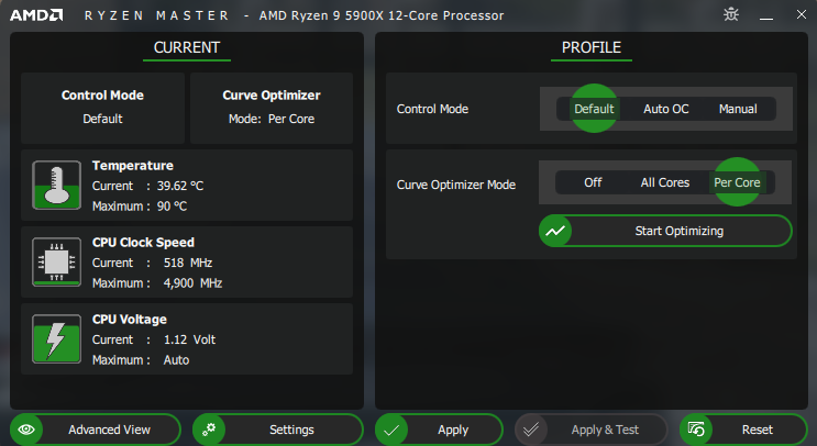 Onder het mom van: laten we eerst eens onszelf het makkelijk maken en kijken wat de AMD mannen zelf zeggen, ben ik de auto CO aan het laten runnen, per core…
